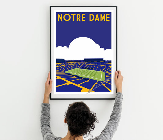 Notre Dame Fighting Irish Stadium - Retro art print poster