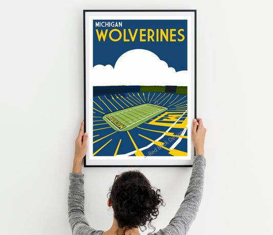 Michigan Stadium, Michigan Wolverines - Retro art print poster