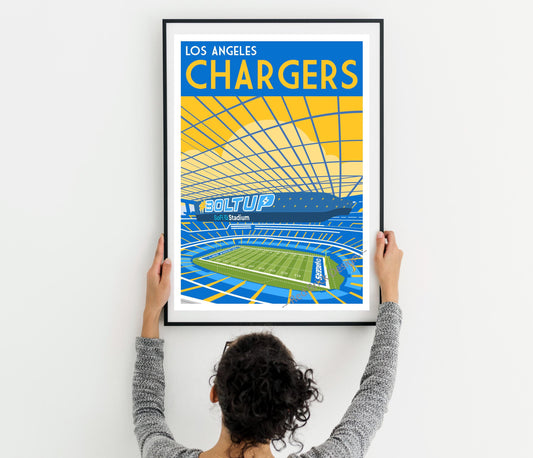 Los Angeles Chargers Stadium - Retro NFL art print poster