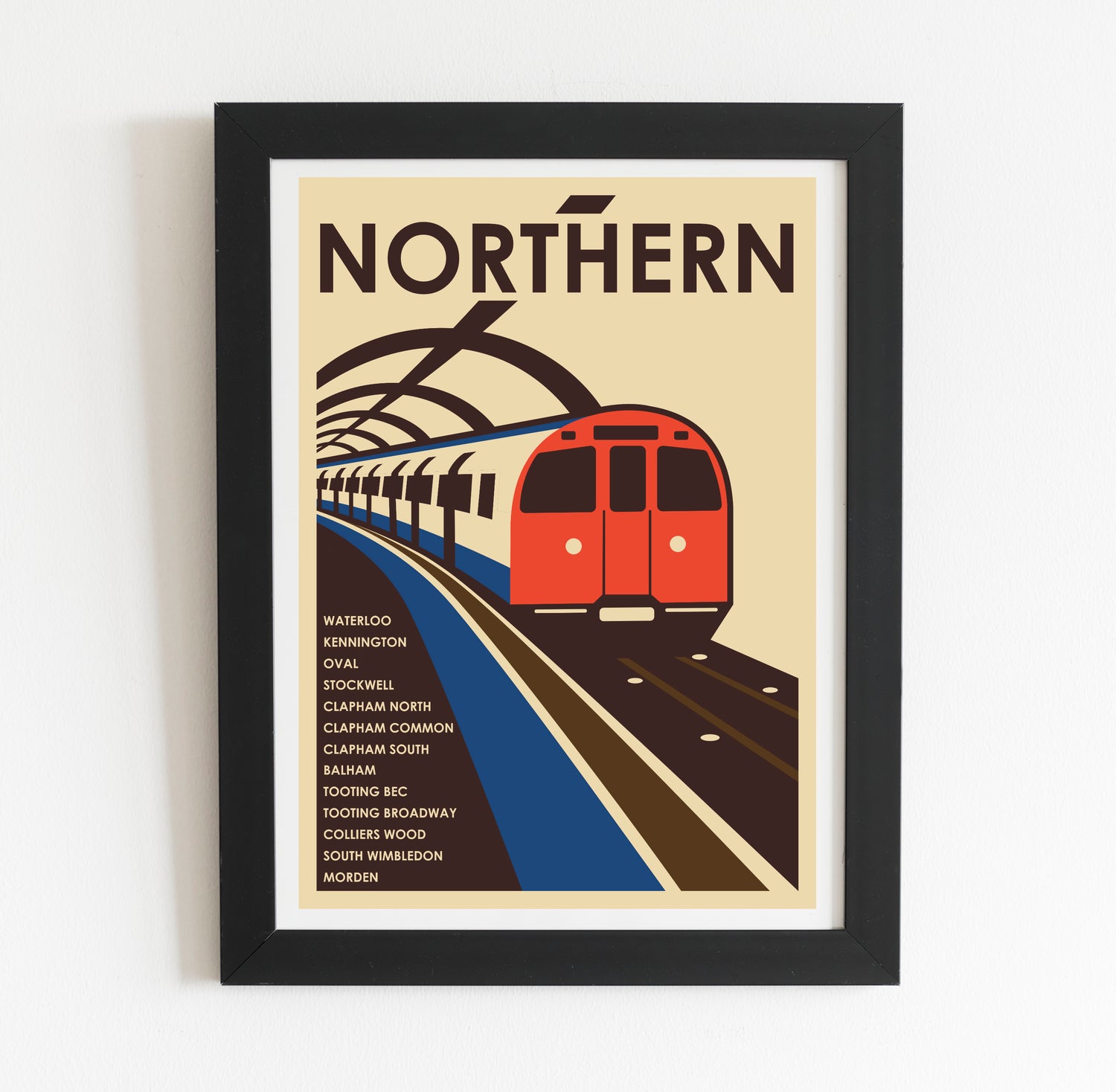 Northern Line South Vintage Travel Print Poster - London Underground Tube